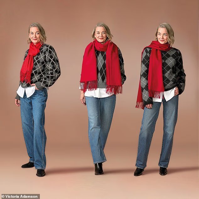 Here, YOU’s head of channel Tracey Lea Sayer models the preppy style with classic straight leg jeans and a bright scarf – perfect for chilly winter days.